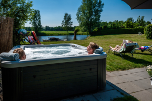 Heerlijk genieten in de houtgestookte hottub, bij het type Westerwolde Wellness comfort (geschikt voor 6 of 7 personen, het Weitehuis (geschikt voor max 16 personen) of het Pallertshuis (geschikt voor 24 personen) staat een mooie houtgestookte hottub.